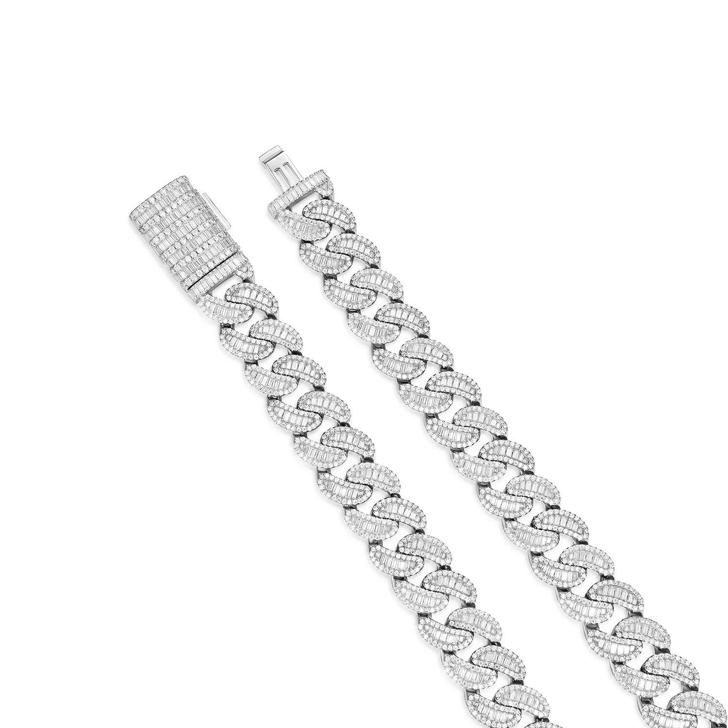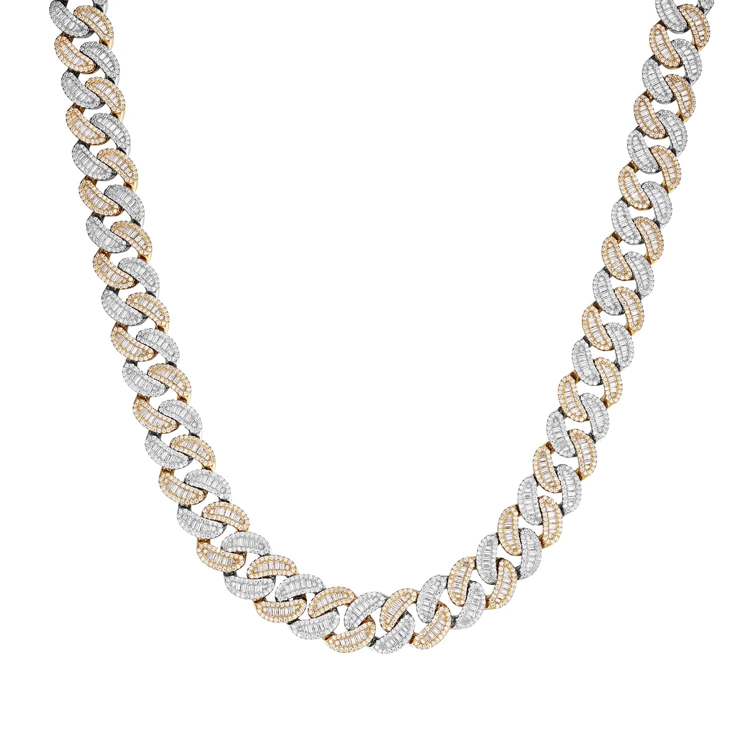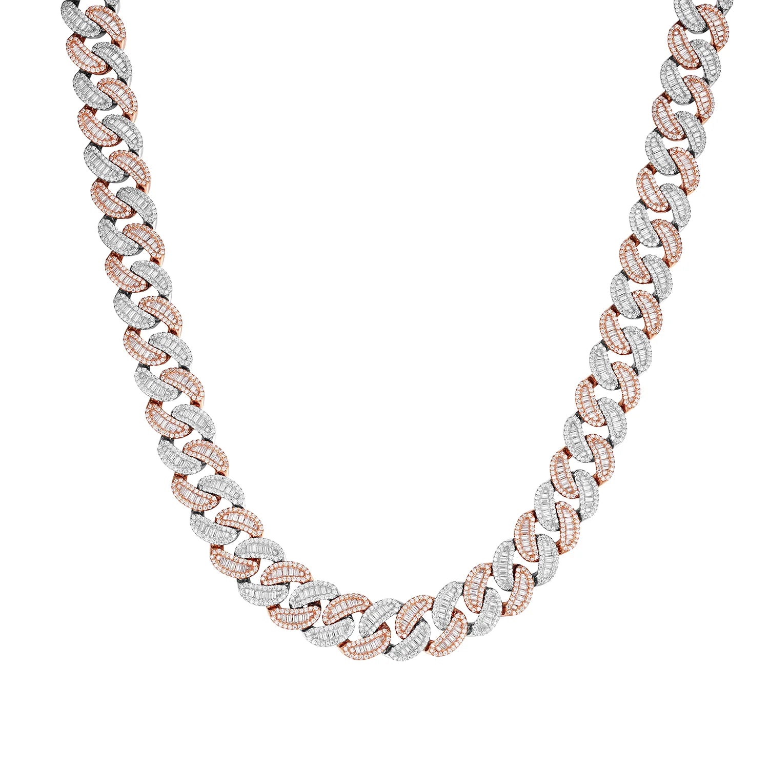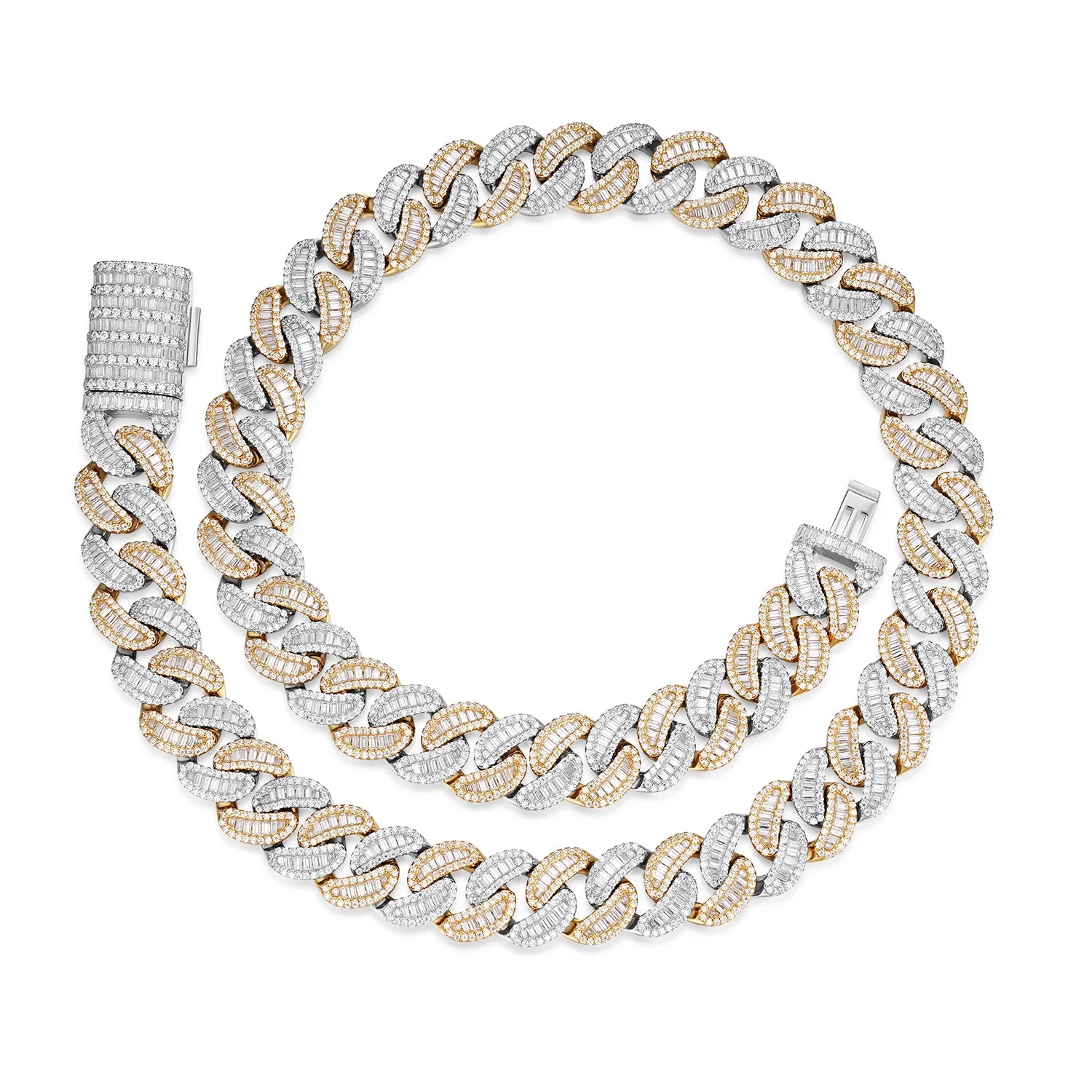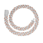 Elevate your style with this striking 15mm Heavy Iced Cuban LinkChain , featuring lab-grown D-color VVS moissanite stones that sparkle with brilliant clarity. Crafted from 925 sterling silver with luxurious 14K gold plating, this piece combines durability with timeless elegance. Available in rose gold, yellow gold, or white gold finishes, and offered in lengths from 16" to 30", you'll find the perfect fit. Each Necklace is precisely weighted for its length, ensuring quality construction. Whether you're dressing up or making a bold everyday statement, this Cuban link design delivers maximum impact with its iced-out aesthetic and premium materials.