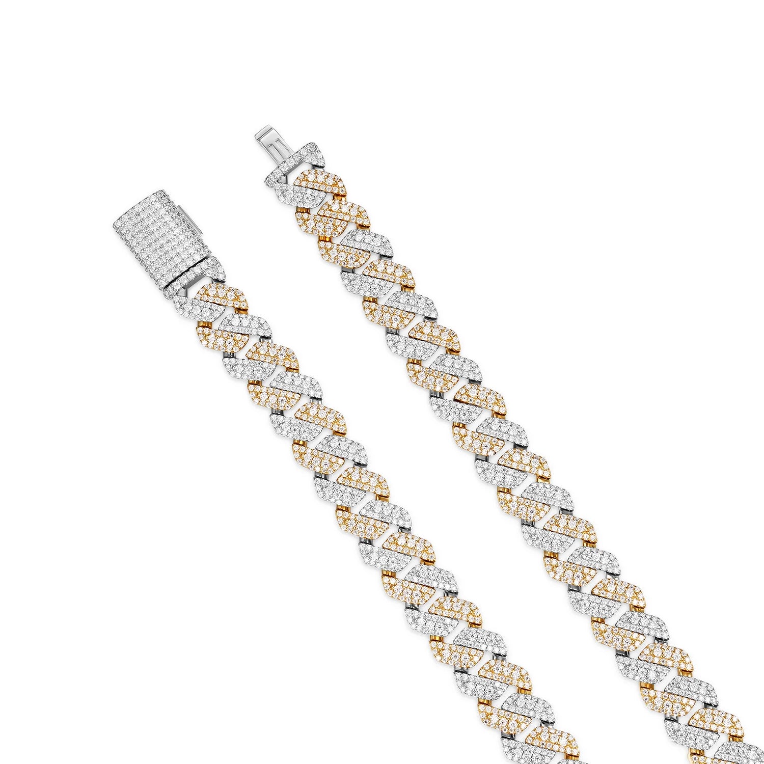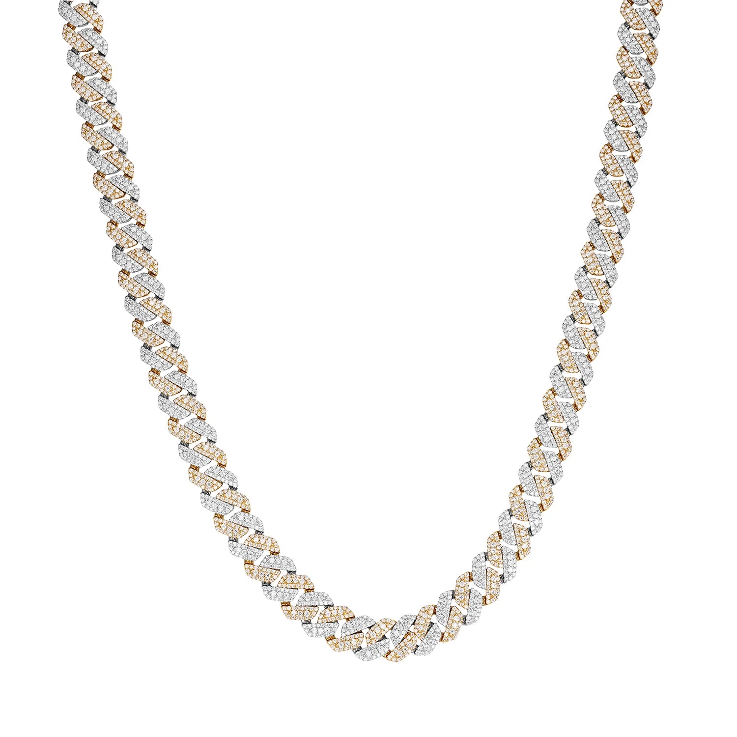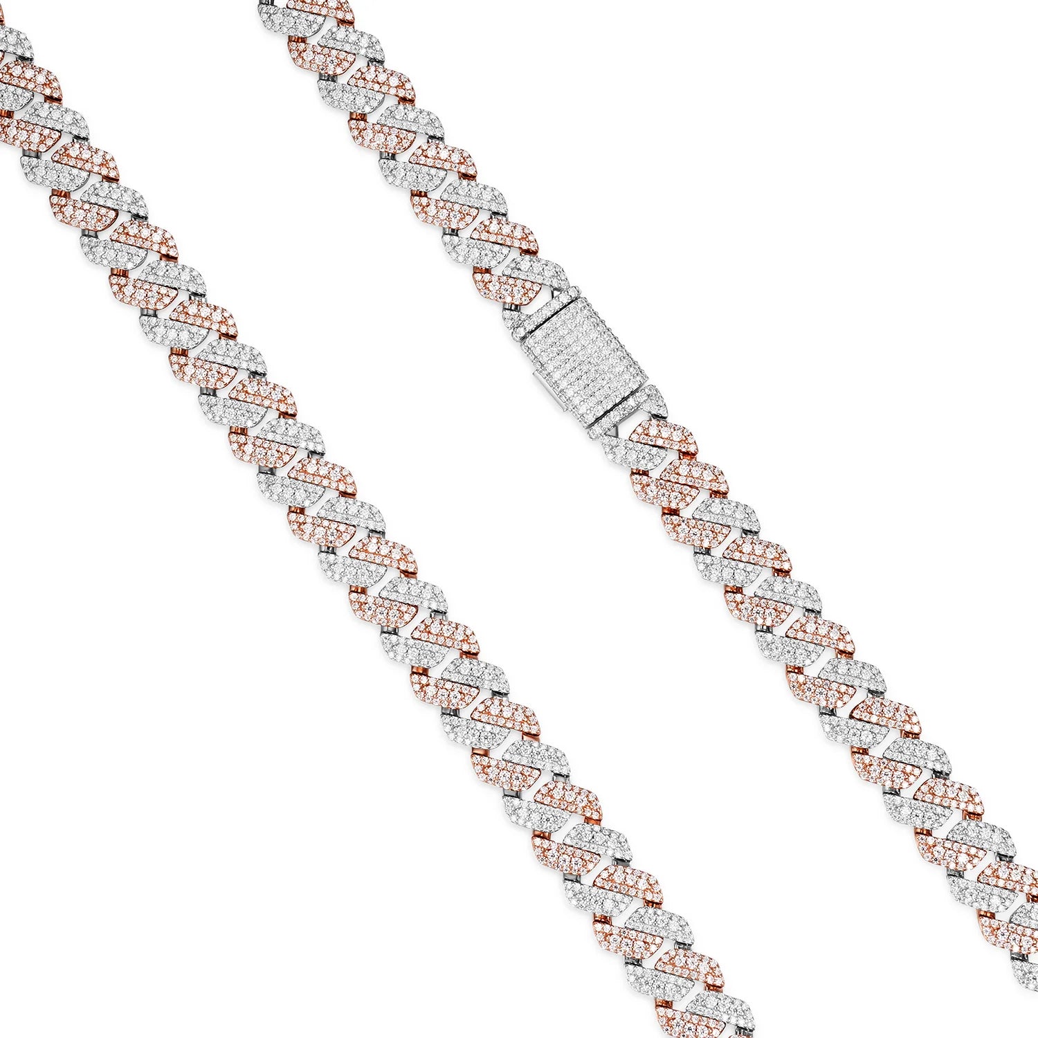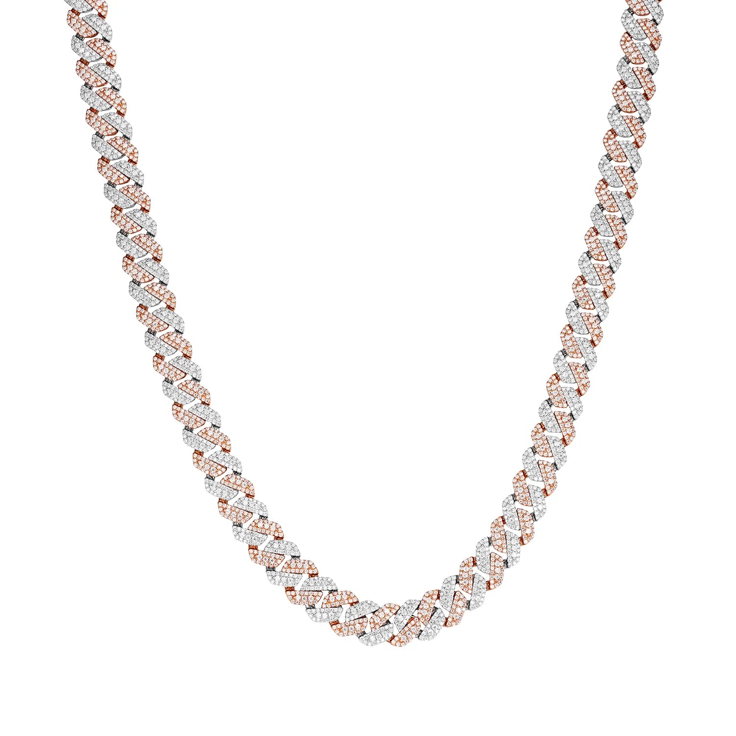 Elevate your style with the Shine Cuban Necklace, featuring premium D-color VVS moissanite stones that sparkle with brilliant clarity. Crafted from 925 silver with luxurious 14K gold plating, this iced-out Cuban link design combines timeless elegance with contemporary flair. Available in two widths—10MM for a refined look or 14MM for maximum impact—and eight lengths from 16" to 30", you'll find the perfect fit. The rose gold finish adds warmth and sophistication to any outfit, whether dressed up or down. Each piece is meticulously crafted to deliver exceptional brilliance and durability. this statement necklace is in high demand. Perfect for those who appreciate luxury without compromise.